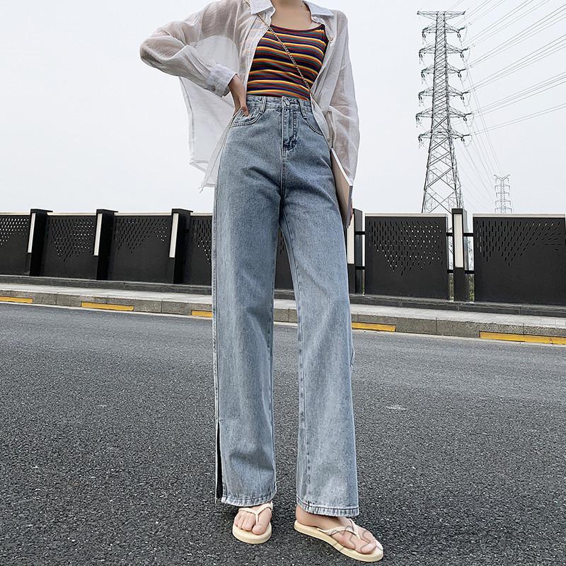 デニムパンツ ロング丈 スプリット ワイドパンツ レディース ハイウエスト ポケット付き デイリーコーデ スリム ストレート お出かけ 上品 女性用 無地 Rage メメメクラゲ 通販 Yahoo ショッピング